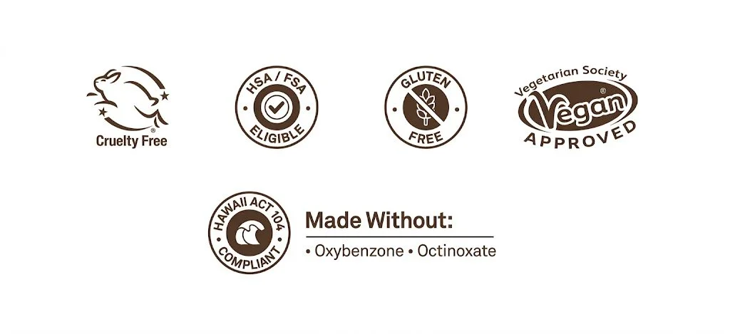 Active Ingredients: Homosalate 5%, Octocrylene 10%, Octisalate 2%, Avobenzone 2%